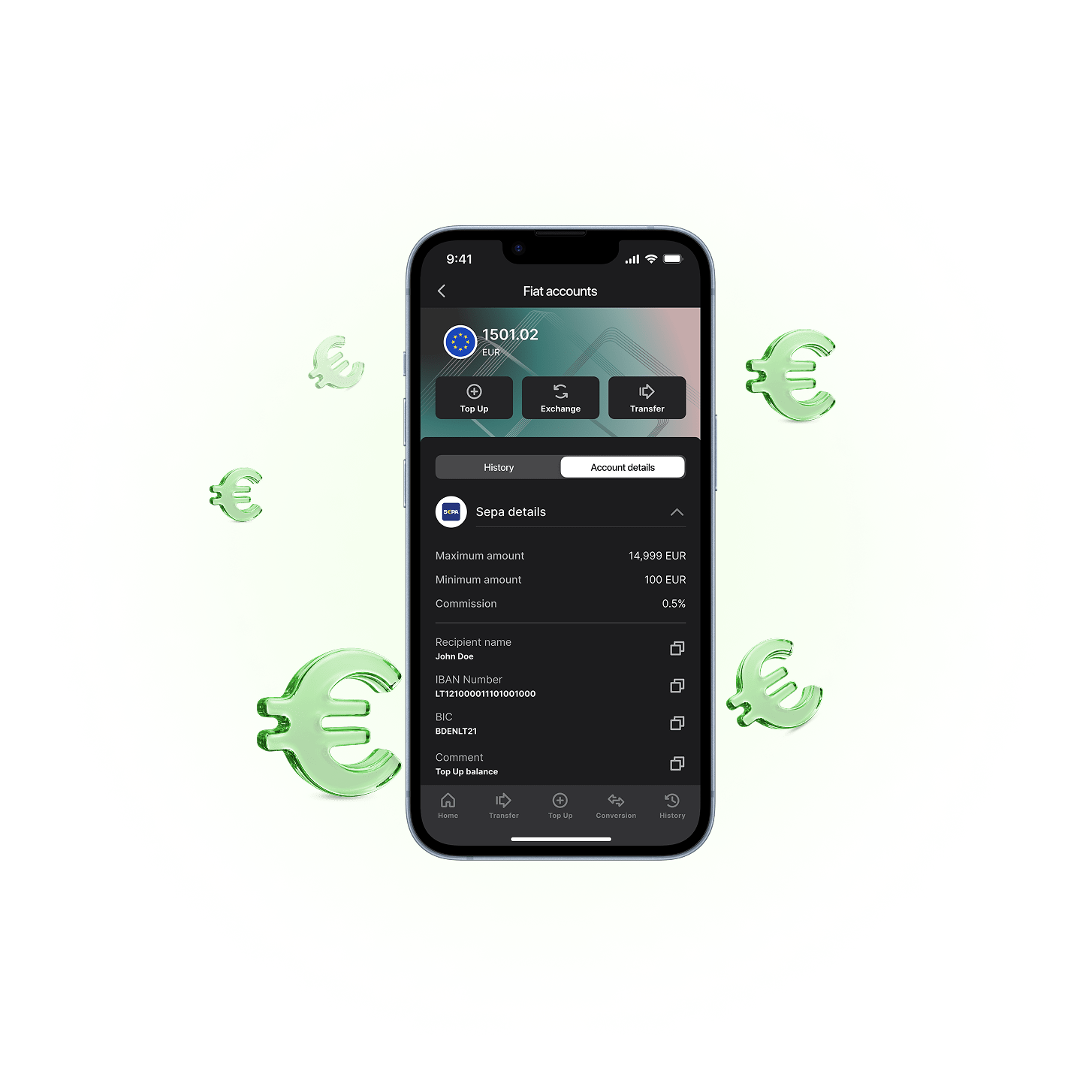 A dedicated IBAN is your personal international bank account with a European bank, which simplifies euro transactions and speeds up the receipt/withdrawal of funds.